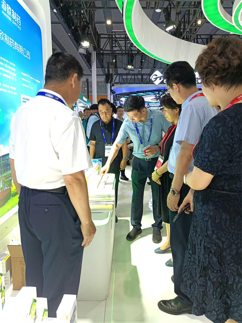 陕药集团李瑞(党委副书记,总经理),张亚洲(党委副书记),屈兵(党委委员),王录(党委委员,总会计师),朱岩冰(党委委员,副总经理)等领导莅临展区,听取了公司总经理刘彦麟对产品情况的介绍。