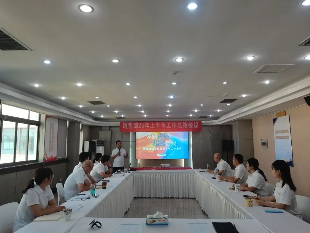 7月4日,西安海欣制药有限公司销售部召开2025年半年工作会,总结回顾上半年销售情况,分析产品及市场形势,并部署下半年关键任务,动员全体销售人员全力以赴冲刺年度销售目标。党总支书记、副董事长、总经理刘彦麟出席了会议,并详细阐述了公司后续产品布局及发展规划。